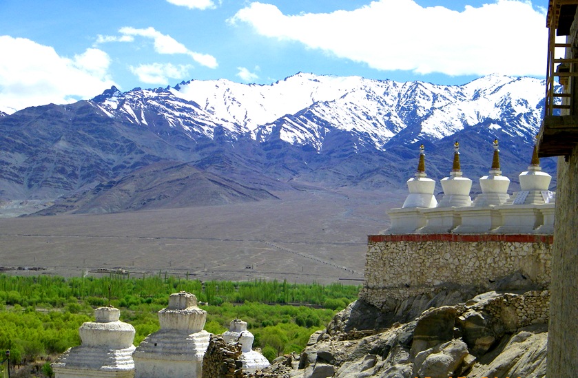 This is a typical view of the Ladakh landscape of lofty mountains, streams, lofty passes, freezing barren land, rocks and dotted with Monasteries.