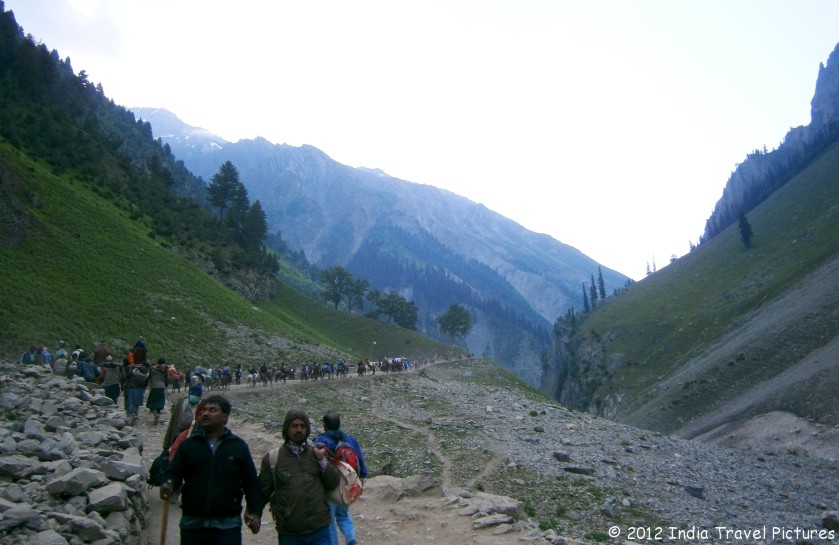 The Amarnath Yatra from Baltal to Amarnath Cave is 14 KMs long. It is a good idea to start early in the morning after a light breakfast. Amarnath Yatra is a rough terrain but the journey is made easy by the cheerful company of fellow pilgrims.