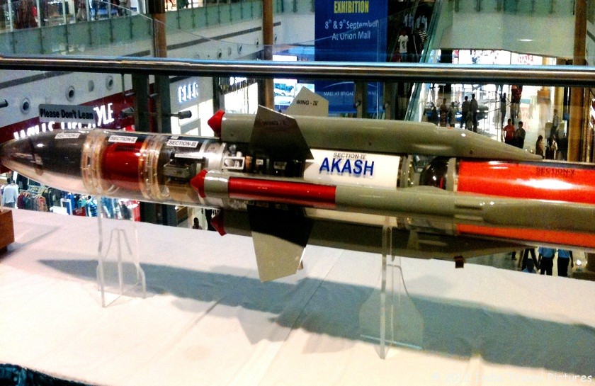 Akash Missile, Indian Airforce Published September 21, 2012 at 840 × 545 in Indian Airforce Show-Aug’12, Bangalore ← Previous Next → Akash Missile of the Indian Airforce is a medium-range mobile surface-to-air missile defense system built by DRDO.